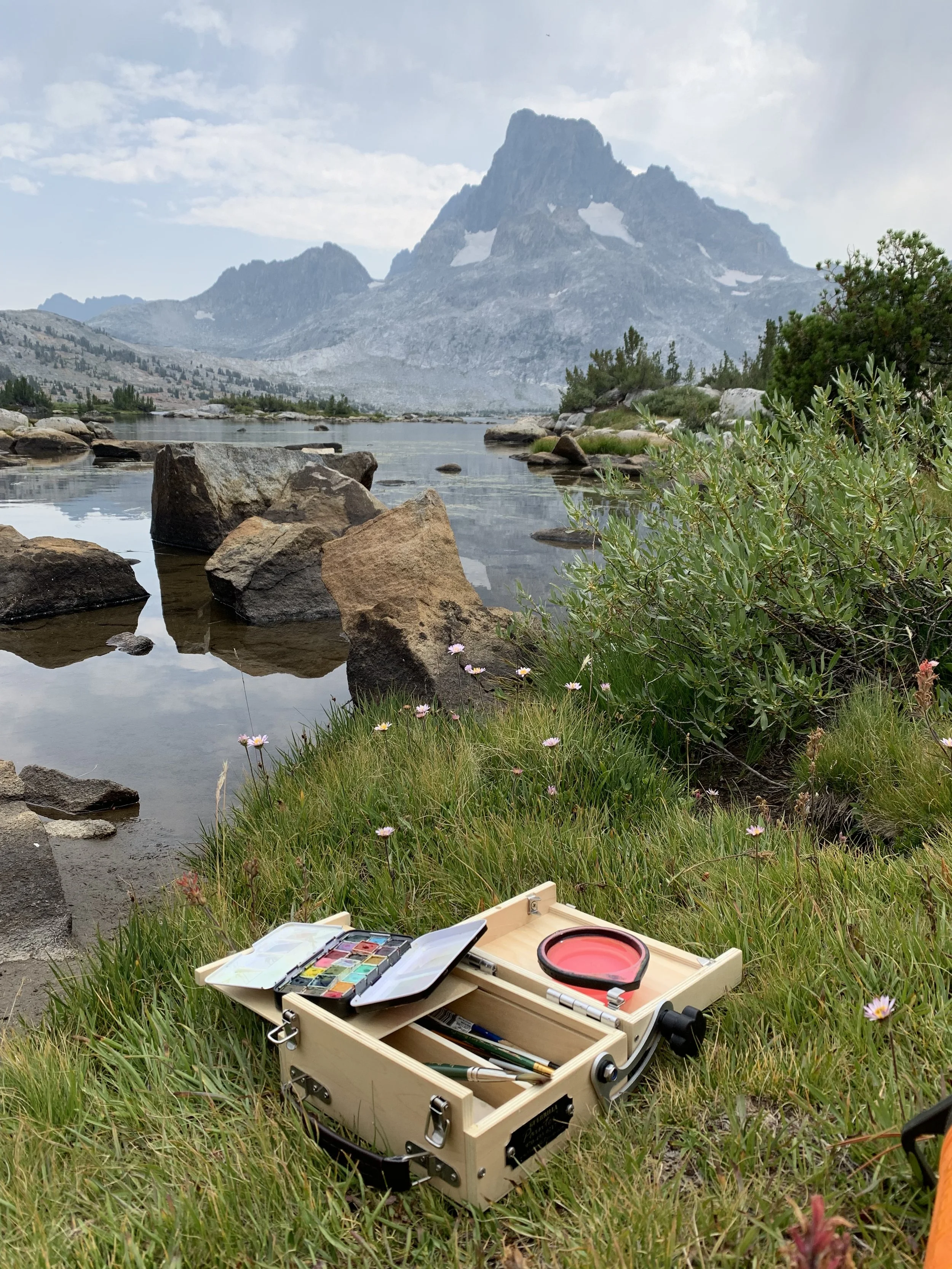 There is so much I could write about my journey, this painting, and all the memories wrapped up in it. I celebrated my 28th birthday on the banks of Thousand Island Lake. It was not a backpacking trip without its’ ups and downs, but what adventure isn’t? It was easily the most perfect birthday weekend of my life. Exploring new trails, floating in chilly alpine lakes, painting in the High Sierra, enjoying a meteor shower in the pitch black from my sleeping bag… what more could a gal ask for?