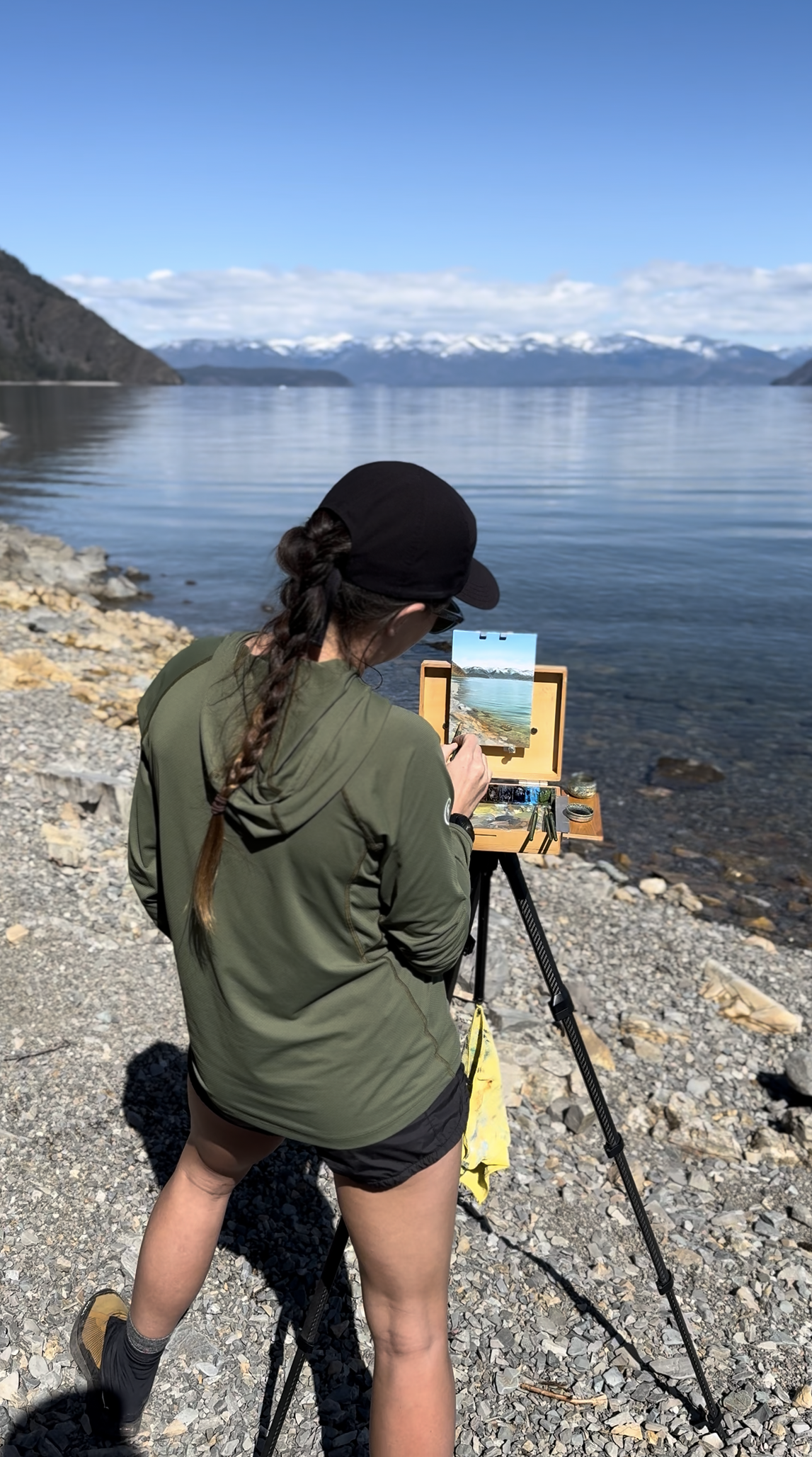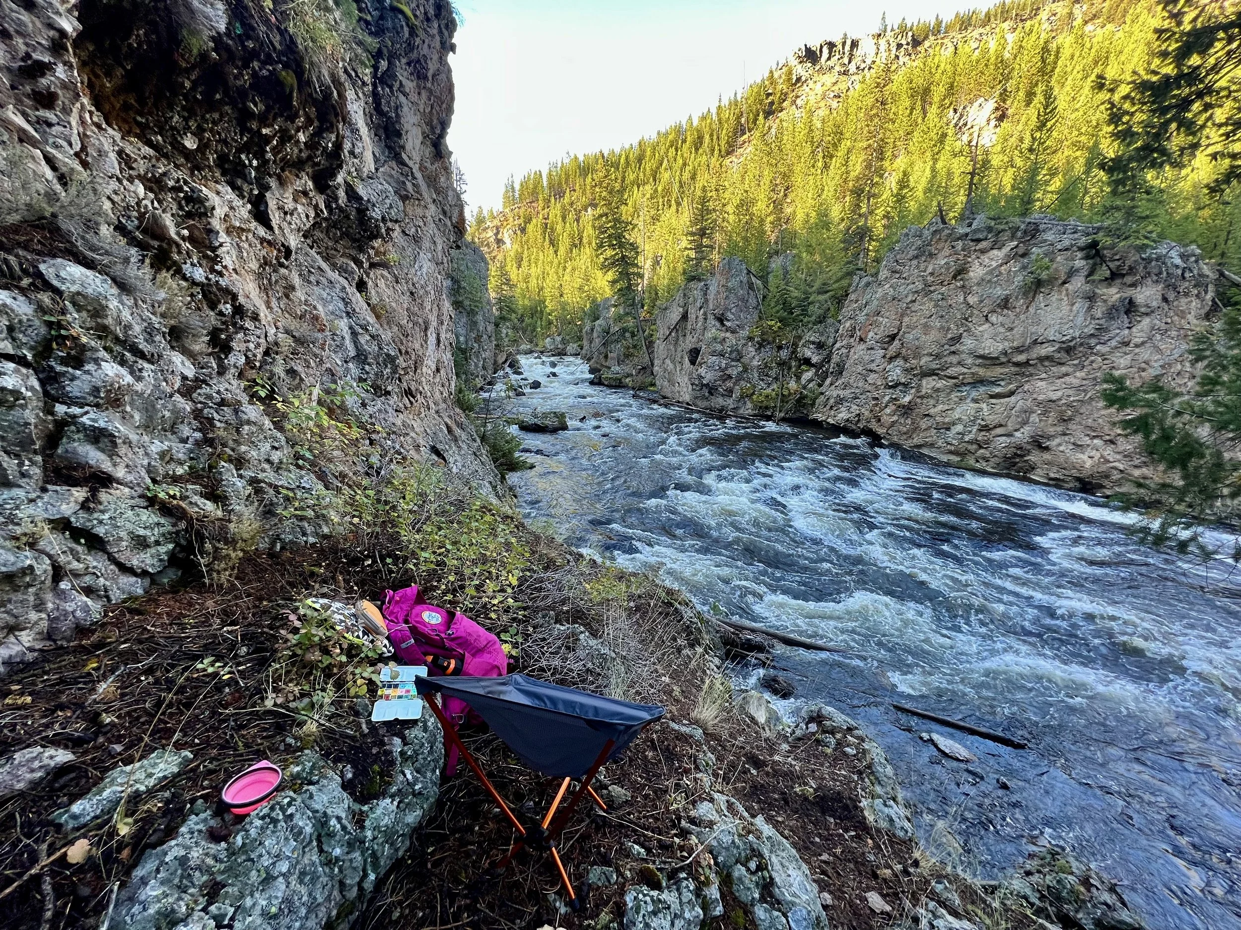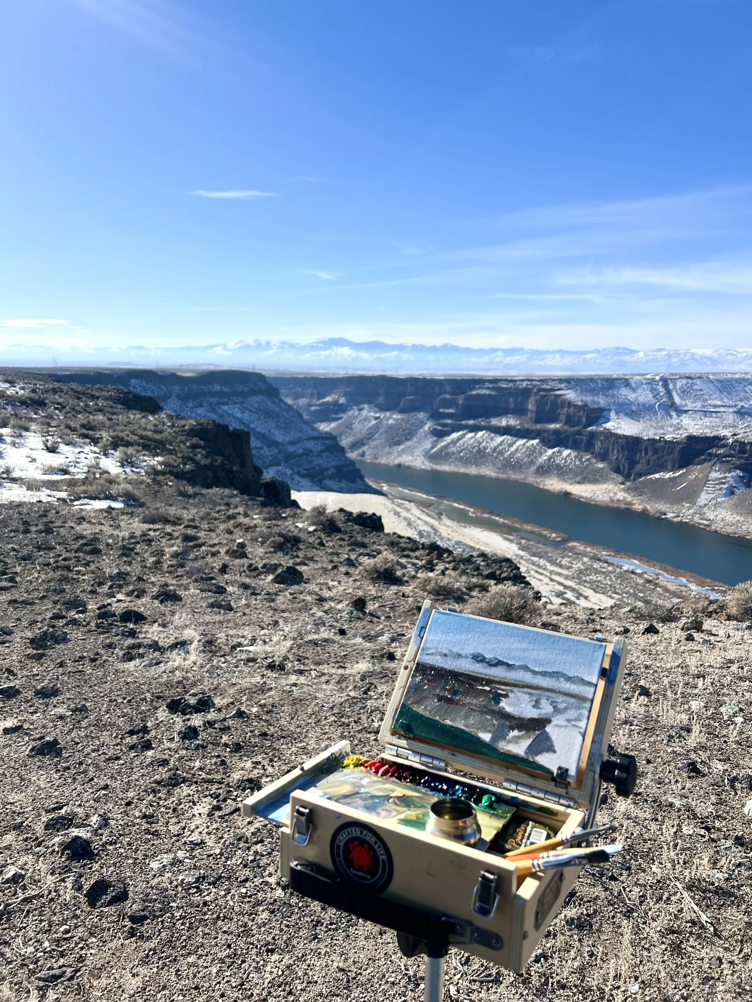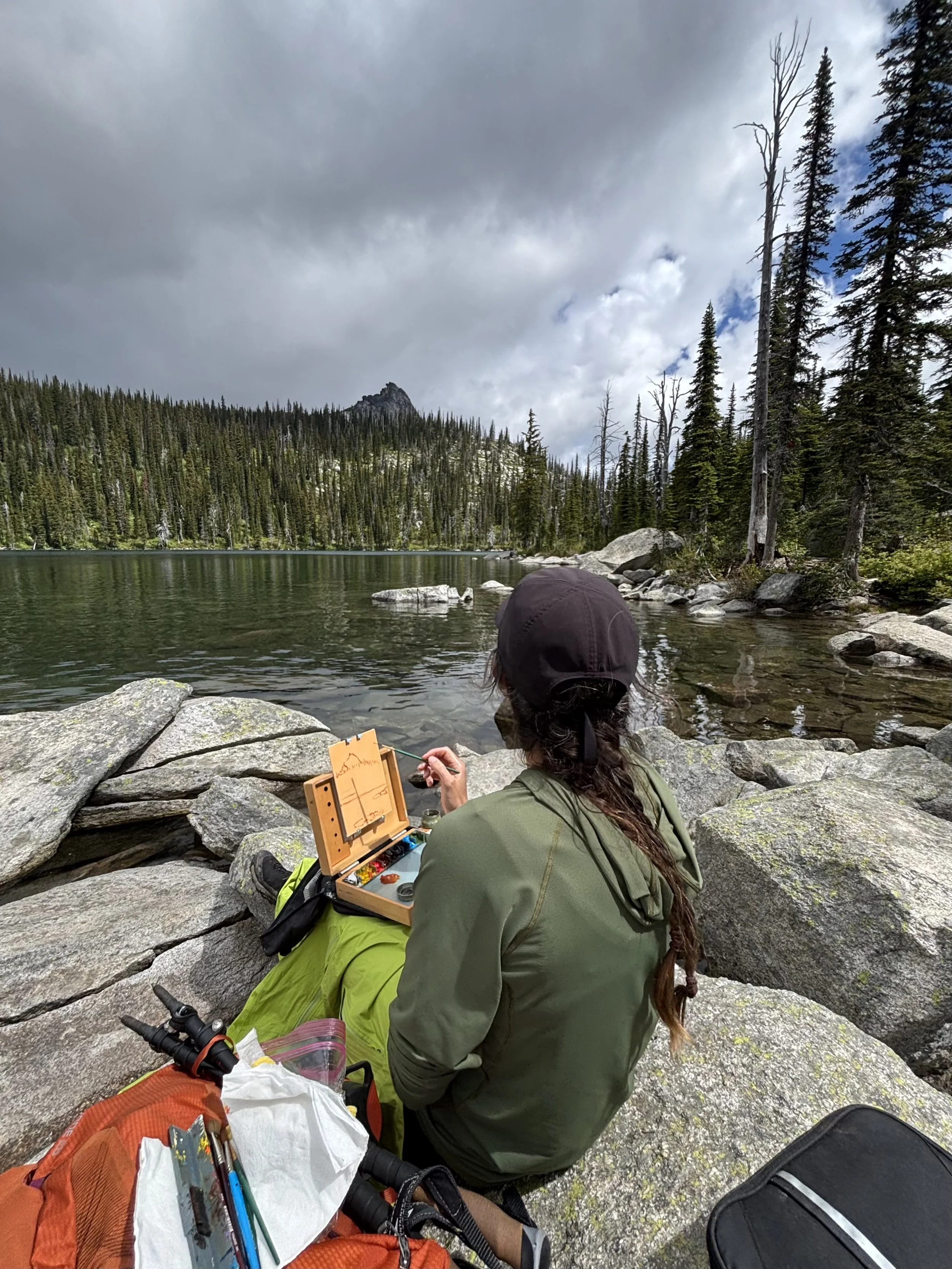 While I can hardly call this a true plein air experience as it lasted maybe 15 minutes, I tried! The wind about blew us off the rocks as we attempted to settle in, but I got a quick sketch in before we threw in the towel! Just like when adventuring, you have to be willing to change plans and sometimes that may mean accepting defeat! While the painting time was minimal, I’m excited to get back to painting this spot. One of the many gems of North Idaho.