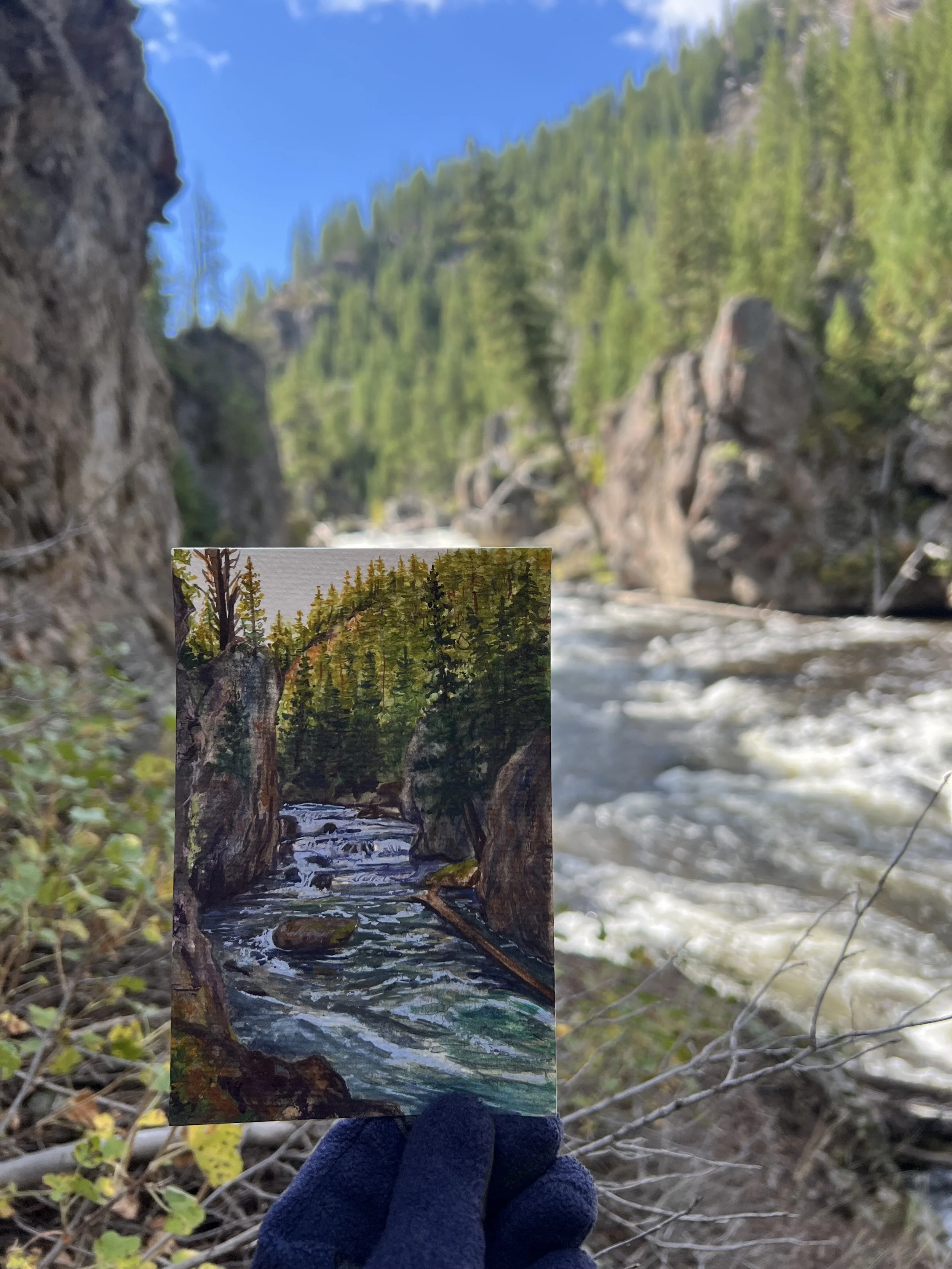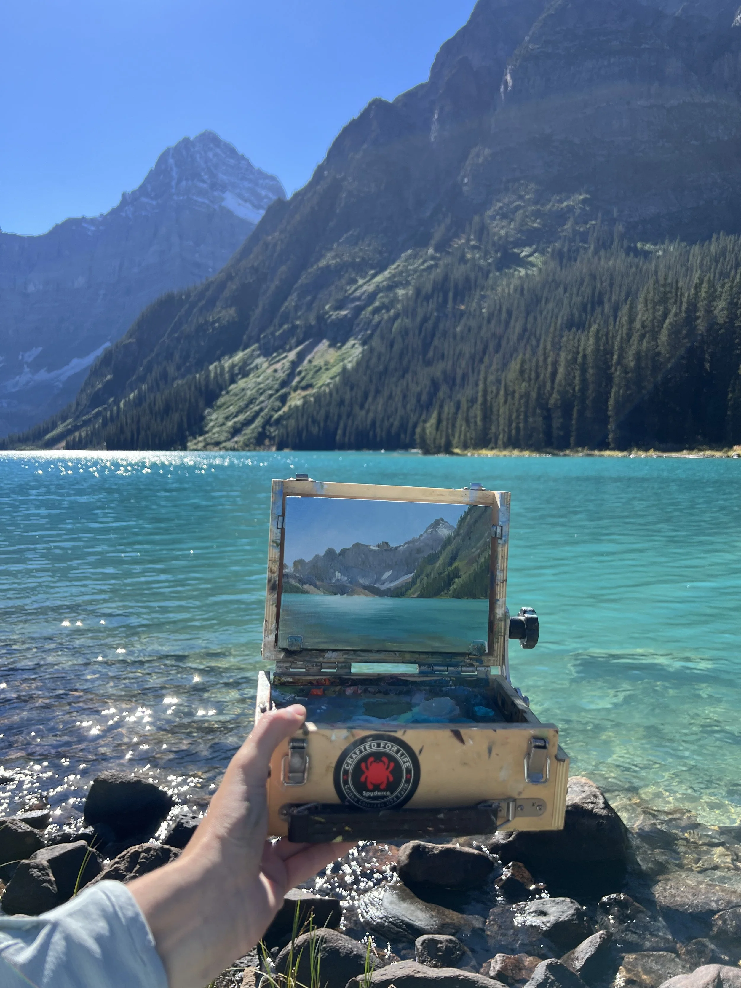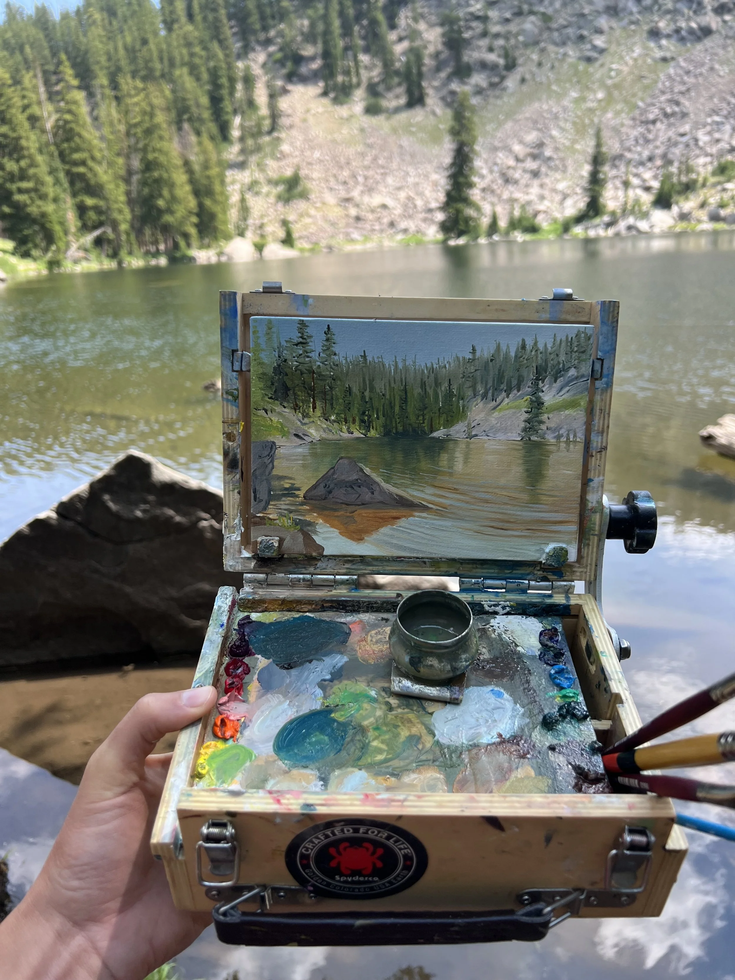 The wind got the best of me on this one, but the view was an absolute paradise none the less. I’ll never cease to be amazed by the stunning tropical looking waters that can be found high up in the mountains. While painting time was limited, it was capturing the colors of the water that felt like the priority.