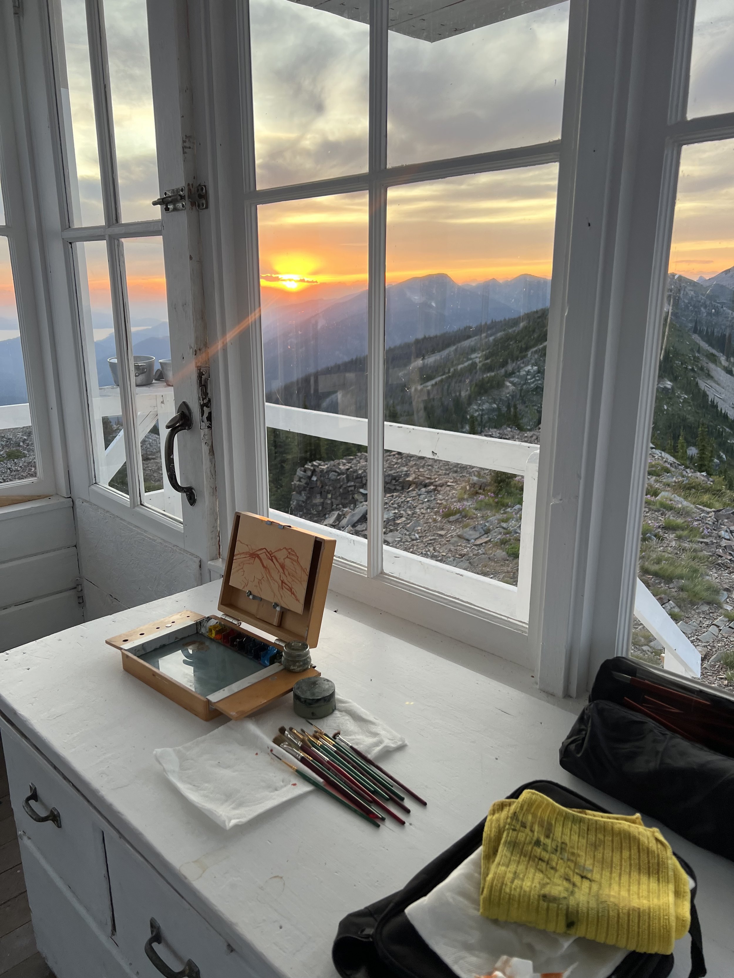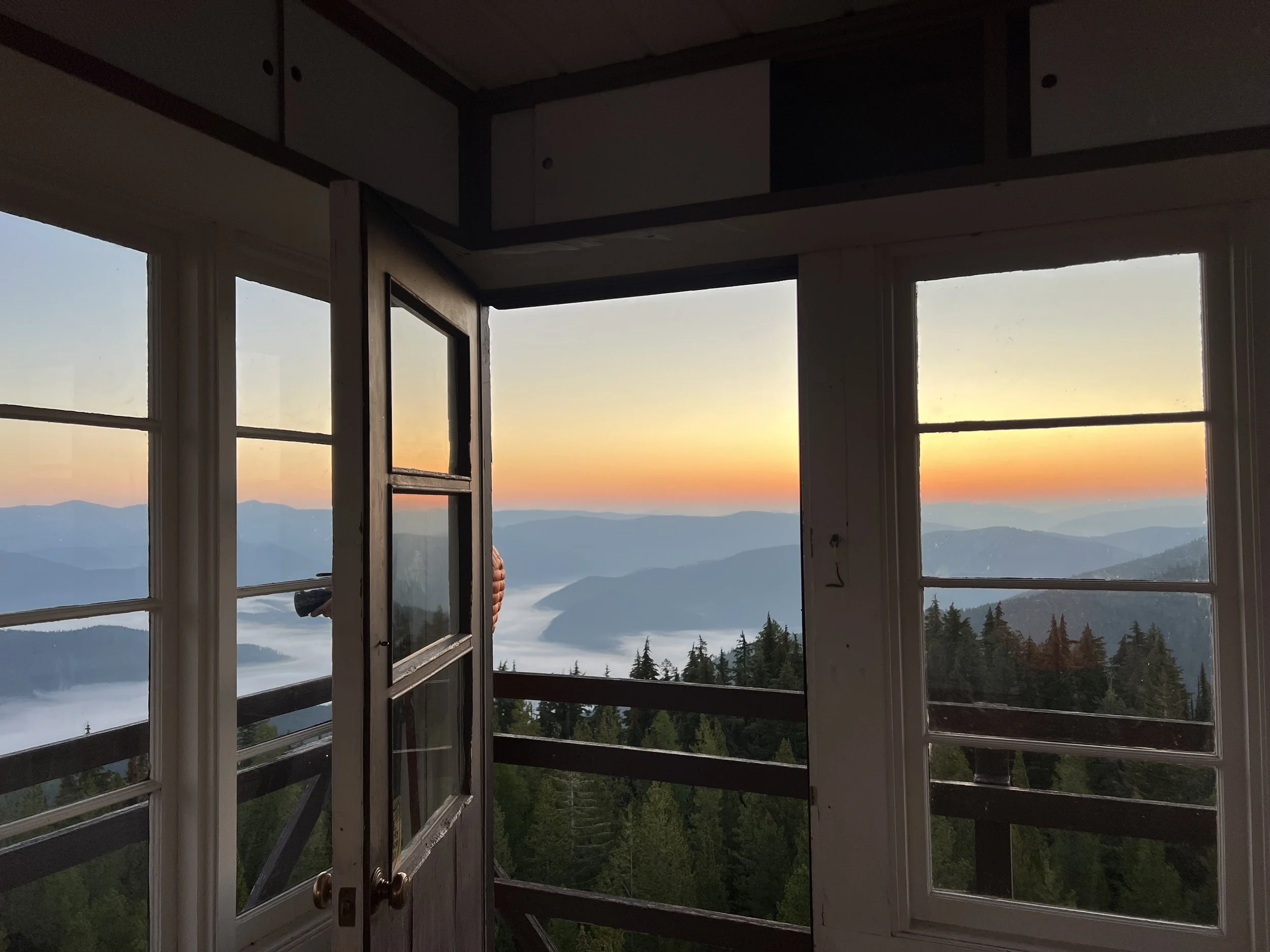 Whether sunrise or sunset, this spot was tough to beat. 40 feet above the ground, your unobstructed view of the mountains and valley below are awe-inspiring. We woke up to a stunning inversion layer filling the valley and creating truly stunning sunrise conditions. In our cozy lookout above the clouds we read, I painted, and we soaked in the peaceful views of Montana.